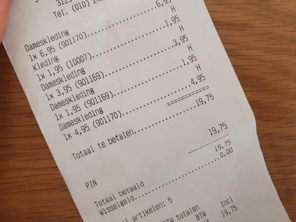 En dan zijn jullie natuurlijk benieuwd naar de totale kosten van de 5 stuks kleding. Ik betaalde *drumrolllll* ….