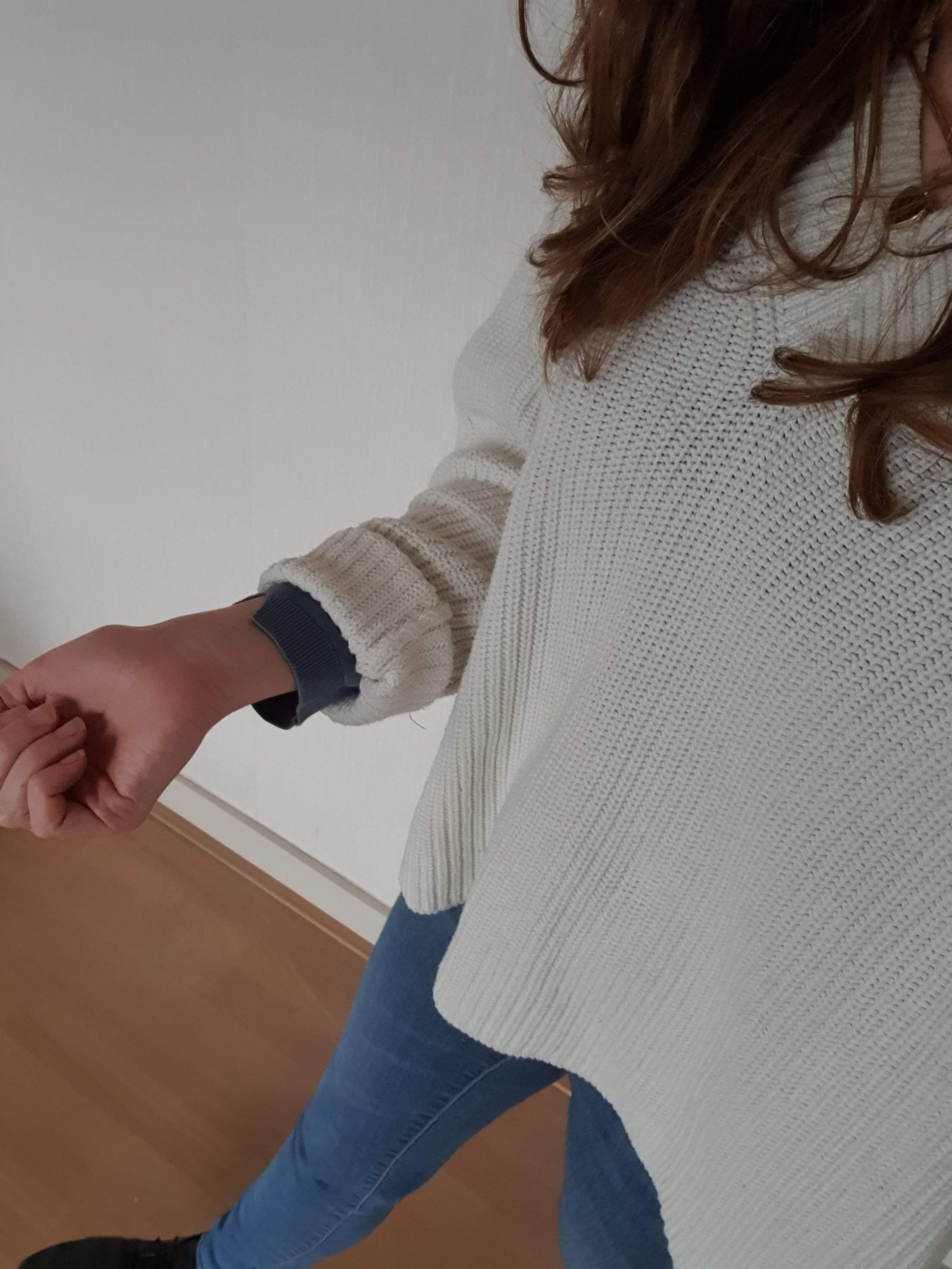 En deze outfit, die ik toevallig nu ook draag terwijl ik dit berichtje typ, is mijn favoriet: de dikke winterse trui met het Italiaanse truitje eronder. Samen met een jeans en zwarte laarsjes vind ik het het leukst.