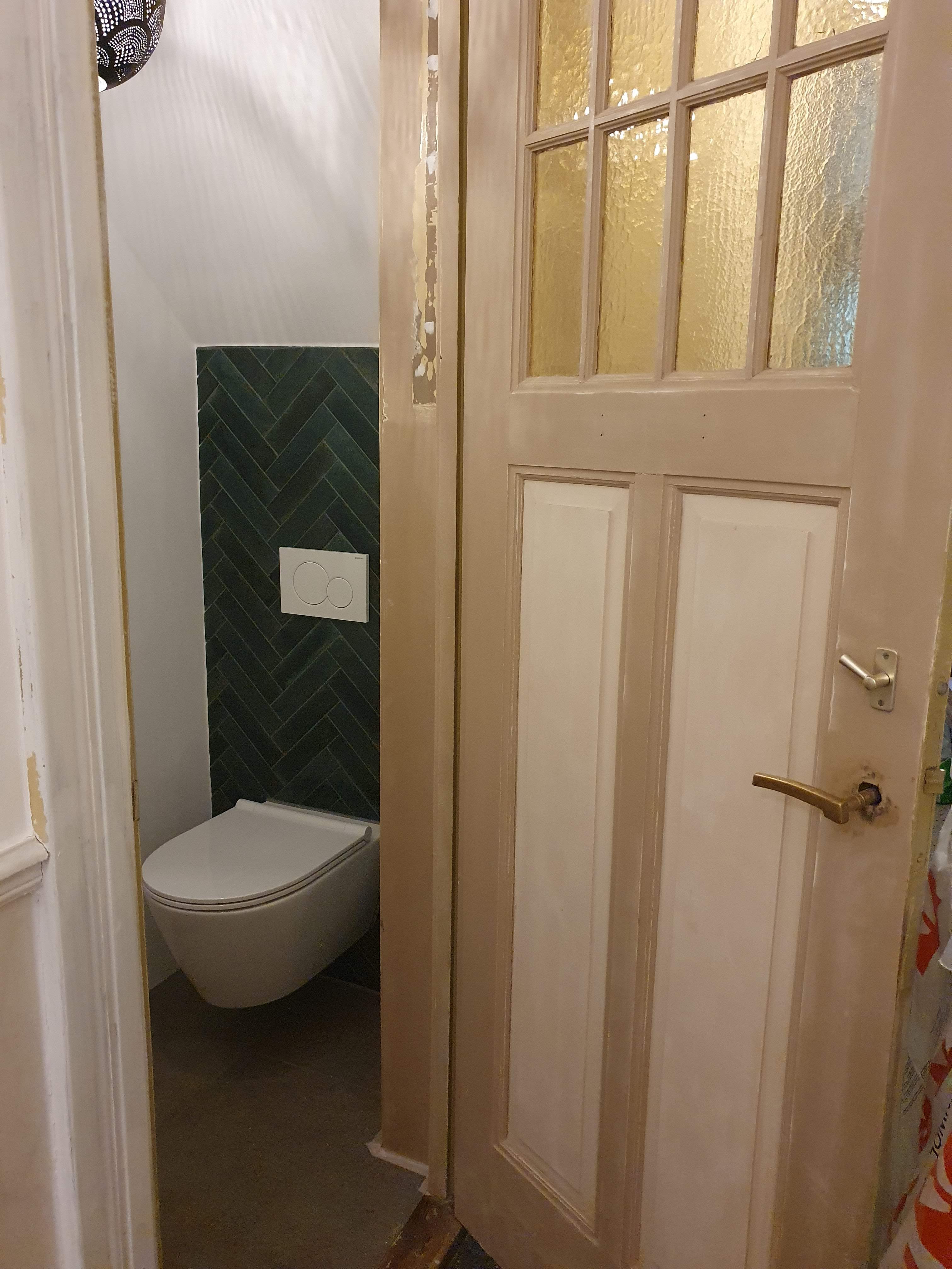 De wc beneden is iets waar ik de laatste tijd mee bezig ben geweest. De tegels zitten erop, het toilet functioneert, er is een wasbakje en de muren én het plafond zijn gestukt en zijn fris wit geschilderd. Nu is het houtwerk aan de beurt en daarna volgt het ophangen van een spiegel, toiletrolhouder enzovoorts. Ik gok erop dat deze ruimte eind deze maand, misschien begin volgende maand af is.