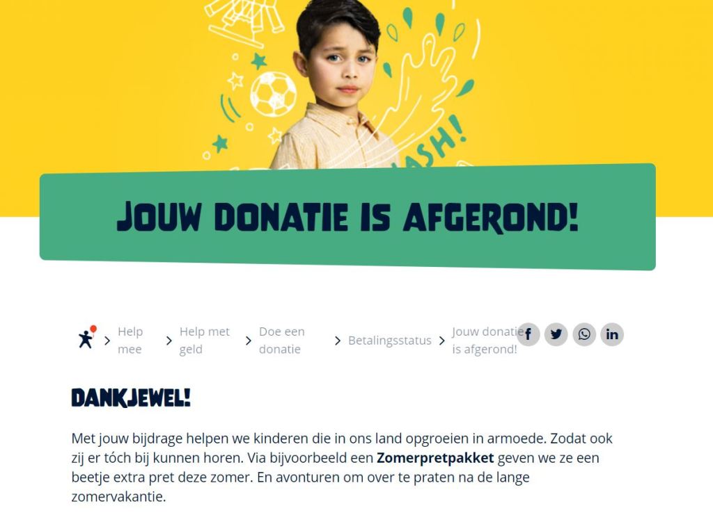 is de donatie naar Kinderhulp ter waarde van € 74 verzonden!!! Waanzinnig! Daar kunnen op de valreep nog een aantal mooie rugzakken voor de vakantie mee gevuld worden.