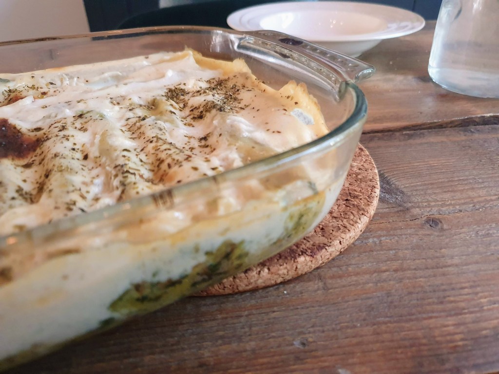 Toen ik een poosje geleden prei over had van een recept, maakte ik van een restje room, de prei en wat nootmuskaat deze prei a la crème. Vervolgens maakte ik deze week een restjes-cannelloni van die prei die dus al een restje was. Zowel deze prei als spinazie waren te weinig om met z’n drieën van te eten, dus maakte ik er een mix van. Samen met het vegetarisch gehakt, wat ik al eerder had gekocht, maar meer uit “ohja, da’s wel handig voor als ik ga vriezerkoken”, een uitje wat nog over was, een goede hoeveelheid gedroogde oregano en een paar lepels van mijn zelfgemaakte zure room maakte ik de vulling voor de pastatubes. Nadat ze gevuld waren, gingen ze de ovenschaal in en maakte ik een bechamelsaus die ik niet te dik liet inkoken. Cannelloni heeft een waterige saus nodig om gaar te kunnen worden. Het resultaat was verbluffend: wat een smaken! Zacht en toch stevig. En met een flinke dosis groente!