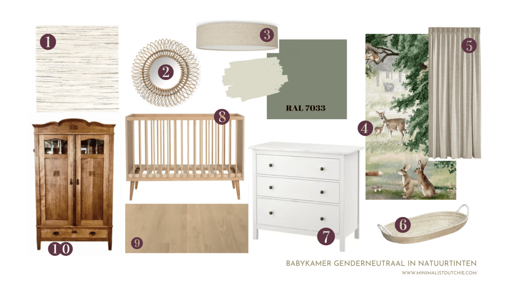 Een moodboard maken, zeker voor zoiets liefs als de babykamer, is één van mijn favoriete dingen om te doen. Vooraf stond voor mij al vast dat ik voor een duurzame, milieuvriendelijke, minimalistische en genderneutrale ruimte wilde gaan (verder heb ik geen wensen hoor!). Dat betekent in ons geval: