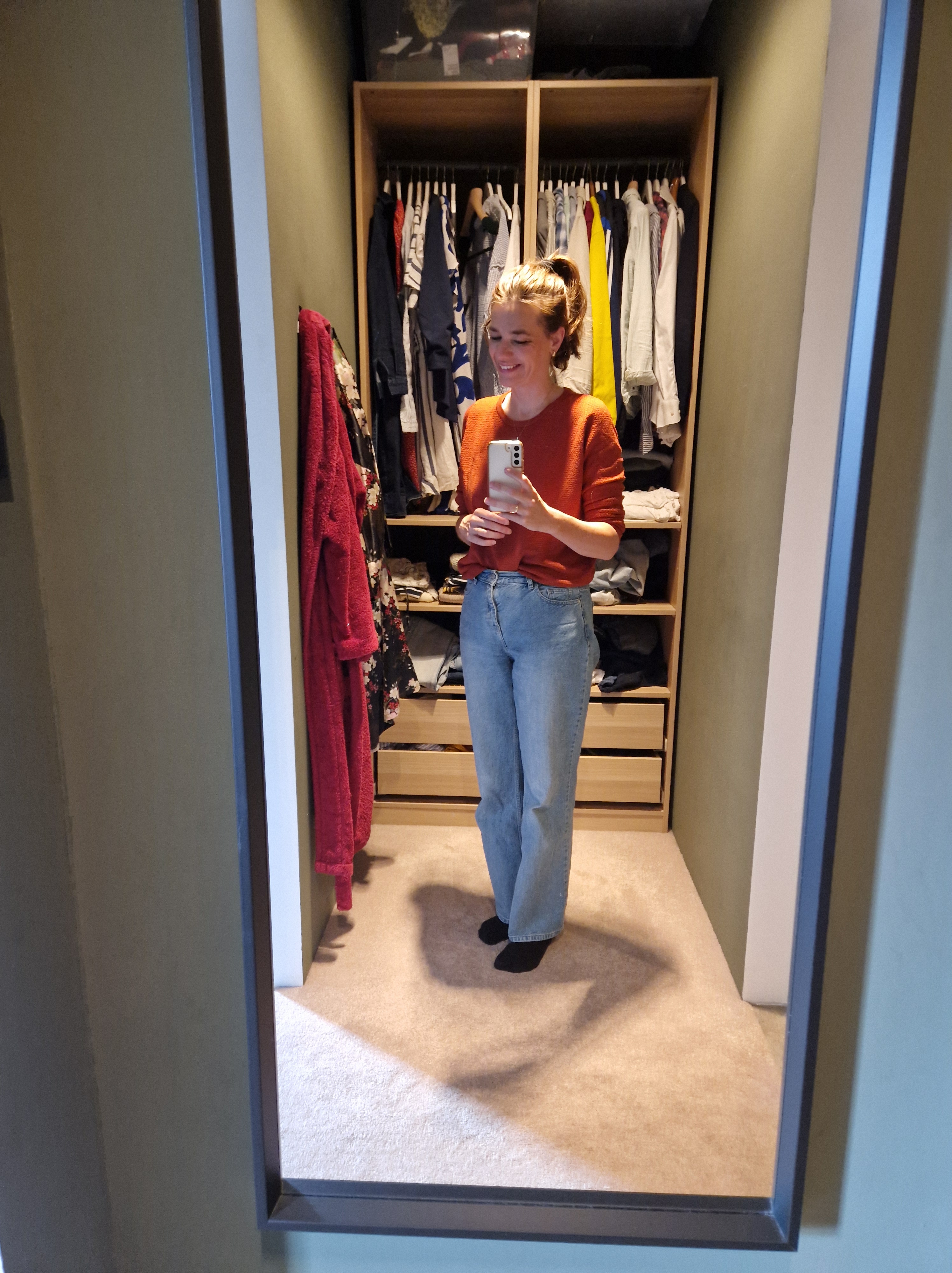 ’s Ochtends denk ik niet bijna niet na over mijn outfit. Meestal trek ik een jeans aan, wit shirt erbij, blazer of jasje als het fris is en klaar. Op warmere dagen wissel ik naar een jurkje of shorts met een luchtige blouse. Op koudere dagen is het een longsleeve of het rode truitje. Alles past bij elkaar, dus ik kan half-slapend nog steeds iets aantrekken waar ik me fijn in voel.