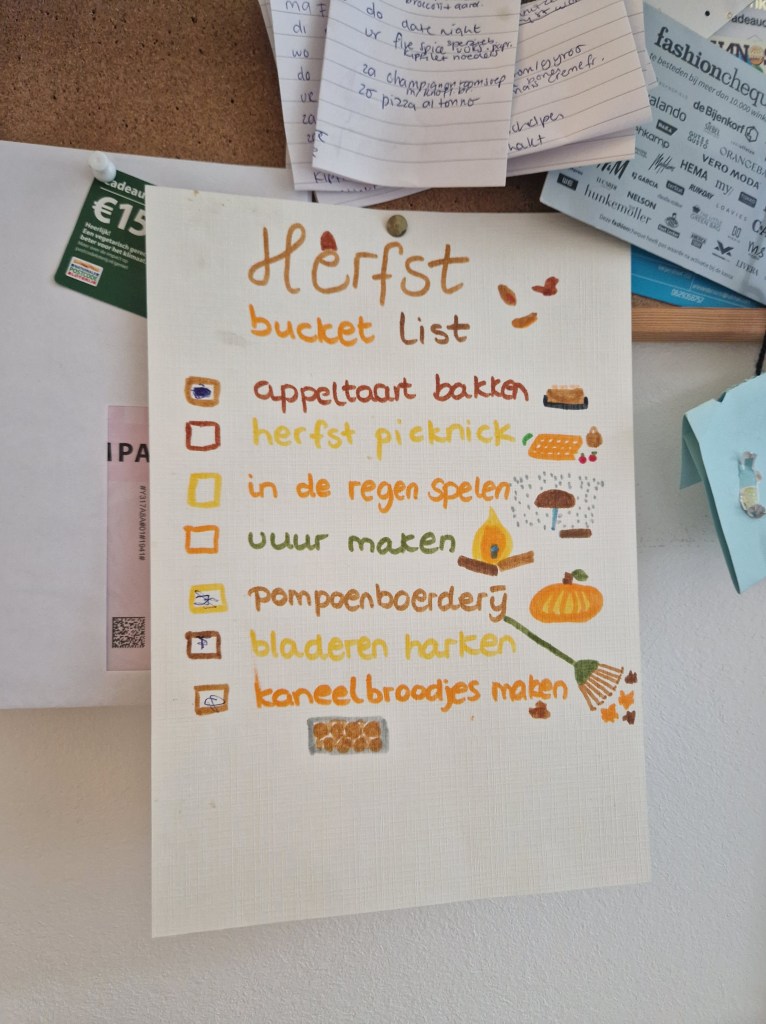 Minimalistisch opvoeden gaat niet over witte wanden en kindertjes die niets mogen. Het gaat over keuzes maken. Over stilstaan bij wat belangrijk is, zodat er ruimte ontstaat voor rust, aandacht en verbinding. Als werkende moeder weet (en ervaar) ik vaak genoeg dat het niet makkelijk is. Maar het mooie is: elke stap in de goede richting helpt. Van even uitblazen in de keuken tot accepteren dat het leven met kids fantastisch is in plaats van pittig, van het opruimen van een kast tot het maken van een herfst bucket list: het zijn de dingen die écht verschil maken.